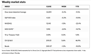 Amid extreme volatility, benchmark indexes absorbed their fifth straight week of losses, borne down by the twin concerns of rising inflation and interest rates. Growth stocks in particular took the brunt of the price declines. The Dow Jones Industrial Average (DJIA) was temporarily dragged into correction territory, roughly 10% below its recent peak where it joined the S&P 500 and S&P MidCap 400 indexes. Faring worse were the Nasdaq Composite and the small-cap Russell 2000 Index which closed the trading week down by more than 25% and well into the bear markets. Although the Cboe Volatility Index (VIX) continued to stay well below the intraday levels it briefly reached in late January, the markets were unusually volatile late this week. Investors exited their leverage positions and caused record flows of exchange-traded funds. Despite the apparent rush of activity, Wall Street had anticipated the Federal Reserve’s announcement of a 50-basis-point (0.50 percentage point) increase in the Federal fund’s target rate to a range of 0.75% to 1.00%. This is the largest Fed rate hike in 22 years.