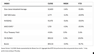 Hopes were dashed during the week that the Fed may slow down the degree to which they raise interest rates anytime soon. The fed funds rate was jacked up 0.75% at its November FOMC meeting, its fourth consecutive increase by the same percentage points. In just eight months, the fed rate shot up from almost 0% to 4.0%, an unprecedented pace in the history of the U.S. economy. Chair Powell stressed that while the pace of rate hikes may slow as soon as the December meeting, any chance that the rate-hiking may pause is still “very premature.” This shows that the Fed perceives greater risk in pausing and easing prematurely the rate hikes, than in overtightening. The message from Chair Powell provided the greatest incentive for the markets to broadly retreat last week, retracing much of the gains from the rebound last October.