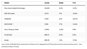 Global stock markets have recorded their first back-to-back monthly gains in more than a year. Major U.S. equities ended higher, driven by investor optimism that the Federal Reserve may soon slow the pace of interest rate hikes. The Dow Jones Industrial Average (DJIA) gained 0.24% and its total stock market index climbed 1.20%. The S&P 500 Index added 1.13% while the Nasdaq Stock Market Composite increased by 2.09%. The NYSE Composite rose by 1.03%, and the CBOE Volatility Index fell by 7.02%. In the S&P 500 Index, growth stocks outperformed their value counterparts while the technology sector posted solid gains. The DJIA, despite rising only incrementally, closed more than 20% above the low it hit in September 2022 thereby entering bull market territory on the last day of November. The strong rally by equities markets on the final day of November was in reaction to the speech delivered by Federal Reserve Chairman Jerome Powell that signaled the likelihood of smaller interest rate hikes going forward. He admitted that the central bank was aware that it may take time for the effects of monetary policy to filter through to the economy. With this realization, the Fed may slow the pace of rate increases as early as the Federal Open Market Committee’s (FMOC’s) meeting that will take place by mid-December 2022.