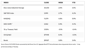 The rally by the Nasdaq Composite and growth-oriented sectors were supported by rebounds in certain mega-cap technology stocks such as Amazon.com, Tesla, and Microsoft. Sectors that lagged included consumer staples. Financial stocks JPMorgan Chase, Wells Fargo, and Bank of America released earnings Friday morning that beat consensus expectations, although cautious outlooks from the large banking corporations triggered a fall in their share prices in early trading.