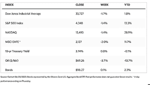 Most of the economic data that were released over the week seemed to deepen concerns that a U.S. recession was inevitable as a result of the Fed’s tight monetary policy. S&P Global reported on Friday that its gauge of U.S. manufacturing activity had fallen back to its lowest level since December and well below consensus estimates. According to the report, presumably in response to weak demand, suppliers were cutting prices at the fastest pace since May 2020, the height of the pandemic lockdown. Although the Fed chairman maintained in his Congressional testimony that the labor market remained tight, weekly jobless claims hit 264,000, matching the revised number for the previous week and still at the highest level since October 2021. There was some strength shown by the housing sector, however, as housing starts were reported at their highest level in more than a year and well-exceeding forecasts. Sales of existing homes were also surprisingly though modestly higher than expected.
