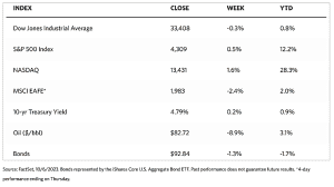 During the week, the mega-cap information technology and internet stocks which constitute the bulk of the large-cap growth stocks outperformed the rest of the market. The Russel Index also showed how large caps outpaced the small-caps by the widest margin since March. Volumes were muted for most of the week as investors sought confirmation from economic indicators regarding the market’s direction. Investors were hoping that the official nonfarm payrolls report, due for release on Friday, would show another decline in hiring. This development was expected to convince the Federal Reserve to forego another rate hike in their monetary policy as such would be a welcome sign of cooling inflation. Before the equity market opened, however, stocks fell sharply on the news that more than double the expected new jobs created was reported by the Labor Department, suggesting that the economy was heating up and, therefore, inflation may be on the rise again.