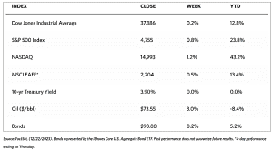 The pan-European STOXX Europe 600 Index inched up 0.21% higher this week in local currency terms and remained near its almost one-year high. Some major continental stocks showed softness while others moved sideways in listless trading on thin volumes just before the Christmas holidays. France’s CAC 50 Index declined by 0.37%, Germany’s DAX ticked down by 0.27%, and Italy’s FTSE MIB was modestly down, The UK’s FTSE 100 Index rose by 1.60%. UK’s inflation slowed more than expected, from 4.8% in October year-on-year to 3.9% in November year-on-year. The unexpected drop was due to a fall in prices for food, motor fuels, recreation, and culture. Core and services inflation showed that underlying price pressures eased, coming in at 5.1% and 6.3%, respectively. All inflation metrics remain well above the 2% inflation target set by the Bank of England (BoE). Revisions by the Office for National Statistics to the Gross Domestic Product (GDP) indicate that the economy performed worse than previously thought in certain quarters. In the April to June period, the GDP was lowered from 0.2% to flat, while the estimate for the third quarter indicated that the economy shrank by 0.1%. Despite lower inflation figures, the BoE stated that interest rates are likely to remain at elevated levels, according to BoE Deputy Gov. Ben Broadbent.