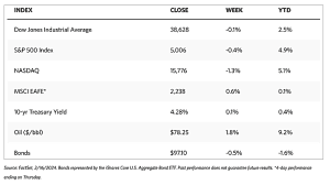 European stocks advanced for the week as the pan-European STOXX Europe 600 Index gained 1.39% in local currency terms. The improved investor sentiment is due to signs of cooling inflation and optimism regarding the possibility of interest rate cuts. Italy’s FTSE MIB outshined, rising by 1.85%, while France’s CAC 40 Index hit new highs during the week and closed on Friday higher by 1.58% week-over-week. Germany’s DAX also impressed, gaining by 1.13% for the week. The UK’s FTSE 100 rose by 1.84% for the week. Core eurozone government bond yields recorded modest gains in response to reports that the U.S. announced higher-than-expected inflation readings. European Central Bank (ECB) officials cautioned against “making a hasty decision,” in the words of ECB President Christine Lagarde, in hastily crafting policy decisions just in case inflation reverses course and heads up again. In the meantime, official UK economic data places the country in recession territory in the final three months of 2023, and that inflation held steady in January, furthering market expectations that the Bank of England (BoE) may cut interest rates by June.