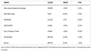 Markets were generally up this week except for the Dow Jones Industrial Average (DJIA), which closed by a modest 0.11% lower this week from last week. The Total Stock Market Index, however, ended slightly higher by 1.13%. The broad-based S&P 500 Index gained 0.95% while the Nasdaq Stock Market Composite climbed by 1.74%, reflecting the outperformance of technology-oriented stocks. The NYSE Composite ended with a 0.64% gain with all Russell Indexes ending up for the week. Investor risk perception, as measured by the CBOE Volatility Index (VIX) came down by 4.65%. The Nasdaq Composite joined the S&P 500 in record territory for the first time in over two years, underscoring the equity markets’ increasing strength. February was a particularly strong month for the S&P 500 which marked its strongest beginning two months of the year since 2019, as observed by the Wall Street Journal. In terms of market sentiment, the defining event of the week appeared to be the release by the Commerce Department on Thursday of the core (less food and energy) personal consumption expenditures (PCE) price index, an indicator of inflation.
