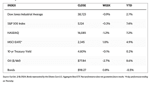 The week began with a sell-off on Tuesday, as the S&P 500 fell by more than 1% for the first time since mid-February due to disappointing policy announcements from China. Stocks regained upward momentum by midweek, however, as the large-cap S&P 500 and the S&P MidCap 400 shot to new record intraday highs alongside the Nasdaq Composite this week. The strong surge was attributable to growing expectations that the Federal Reserve may begin to cut interest rates sooner than previously speculated. Small-cap and value shares outperformed. On the contrary, mega-cap shares lagged partly due to a decline in Apple following reports that iPhone sales were slowing in China. This was also the reason that Nasdaq underperformed the broader indexes. Despite this apparent breakout, most of the market reacted to higher-than-expected unemployment reports by the week’s end.