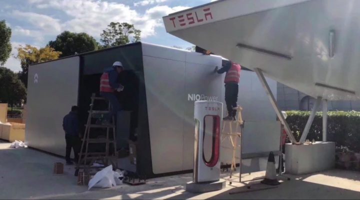 Nio builds a battery swap station right next to a Tesla Supercharger